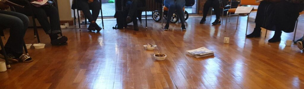 An unserem Treffen in der Kirche nahmen 8 Frauen aus dem Lager teil, von denen die Hälfte über die neue Route Weißrussland/Polen gekommen war. Sie waren froh, dass sie jetzt einen warmen Schlafplatz und medizinische Versorgung haben. Die meisten von ihnen waren auf dem Weg traumatisiert. Sie waren in verschiedenen Ländern inhaftiert, wurden hin- und hergeschoben und auf vielfältige Weise gedemütigt, bevor sie Deutschland erreichen konnten. Hier erwarten sie Frieden und Würde. Sie sind nicht nur dabei, die Wunden zu heilen, sondern machen sich auch große Sorgen um die Zukunft.